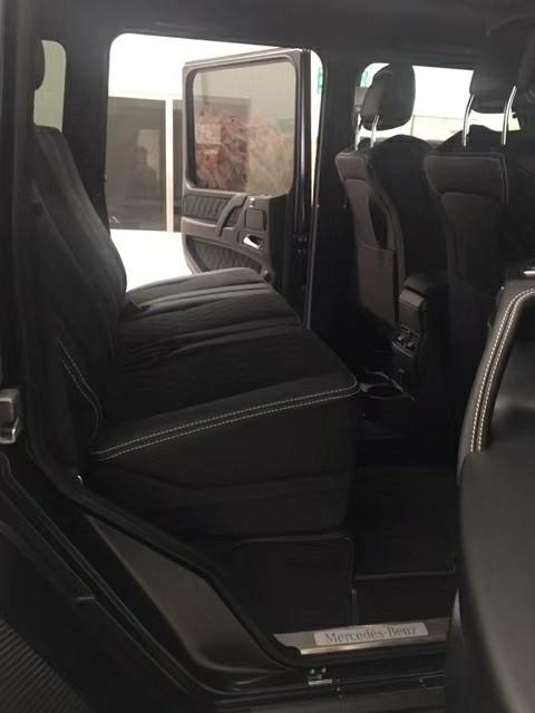 18款奔驰G5504x4²强劲的楔形特征以及醒目的奔驰车标使其在静止不动的时候都能让人感受到他的奔放气息。电动遥控踏板会自动伸出,否则以G5504x4²达2300毫米的车高,上车就是一件苦力活。该辆G5504x4²维持了黑色真皮重新包覆中控台、座椅及门板。