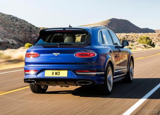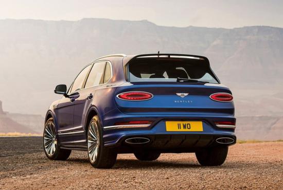 宾利对添越的车尾进行了大幅度改造,采用了更简洁的凹面尾箱盖以及全新椭圆形尾灯组,同时车牌被移动到下保险杠处,两侧配备了宽大的分体式排气尾管,整体视觉上更加简洁。此外,新车后轮距增加了20毫米,并安置在新设计的轮拱中,以保证更动感的视觉效果。