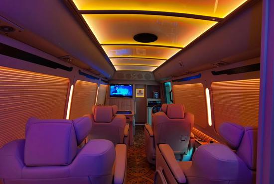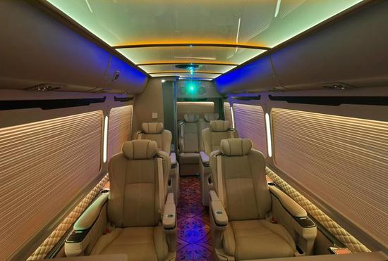 丰田的考斯特双人陈述请示席,安稳席位。车厢内冰箱和酒柜装璜,这些装置与司机驾驶席后的表现屏隔断,将车厢与驾驶席隔开。丰田的考斯特可以在隔断的中间增加电动门,便当来回的互换与沟通。在驾驶舱与乘客车厢中间增加隔断不单仅是为了车内构造的雅观。丰田的考斯特办公桌可以选择真皮包裹桃木的商务办公桌,也可以选择带有升降电视的豪华办公桌,再或是定制的智能办公桌。丰田的考斯特选用了高端音响系统,按照家庭影院音响系统设计,专注于杜绝噪音和消除震动构筑出合适高保真音响系统的完美环境,支持多声道环绕声效果,给乘客带来视觉与听觉十分冲击的效果。丰田的考斯特在内饰地毯的设计上丰田考斯特改装商务车也有很多不同的方案设计蓝色的地毯设计大气端庄。红色的全车地毯增加彰显独特和尊贵,而车内的设计上还可以选用豪华的游艇木地毯,大气大的设计展现内饰的独特和尊贵。