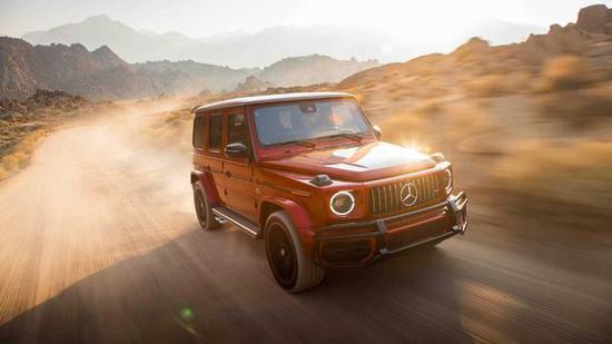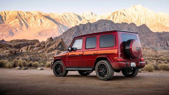 全新AMG G63与奔驰G级相同,还是沿用着“方盒子”造型,只是细节部分变得更加细腻。新车前脸换装由12根竖置镀铬饰条组成的直瀑式进气格栅,两侧的圆形LED大灯组看起来个性十足,搭配上透镜以后光照限度更强;前保险杠下侧的进气口相比普通版车型尺寸更大,并配有防撞设备,整体极具侵略性。
