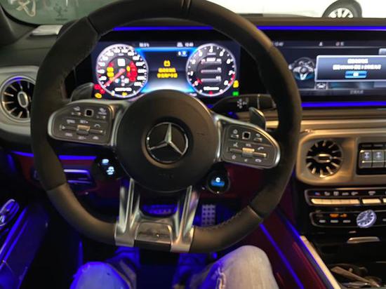 20款全新G63内饰方面,新G63保留了新G500的整体设计,除配色差异外,新车还换装了全新造型的平底式AMG运动方向盘,其两侧配以打孔皮质包裹,下部镀铬装饰的造型也与新G 500明显不同,看上去十分战斗。此外,全液晶仪表盘+中控大屏的双12.3英寸屏幕设计在新车上也没有缺席,营造出了浓郁的科技感。