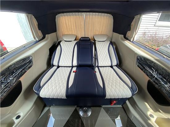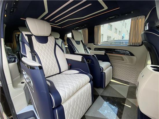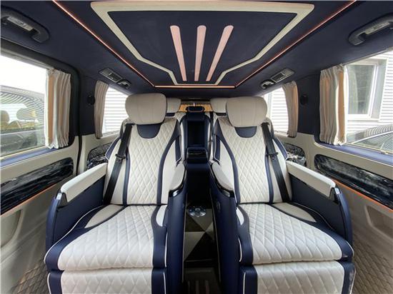 新款奔驰威霆七座商务车的个性定制头等舱可选装航空按摩座椅,160的大幅角度调整,让你舒缓行车中的疲劳感,累的时候路途上睡一觉也不错。
