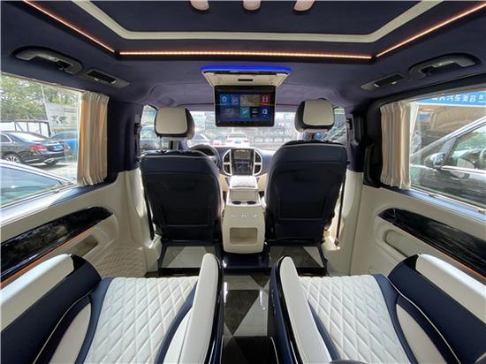 氛围灯、脚踏、阅读灯、19寸液晶吸顶TV、全车隐私窗帘等细节装饰升级,让此款奔驰mpv表现的更为体贴细致。