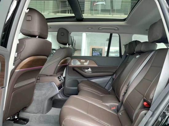 20款奔驰GLS450的内饰配了实木/皮革组合的多功能方向盘和带有三种颜色及亮度调节的环境氛围照明系统。车内为三排七座设计,所有座椅均由真皮打造。