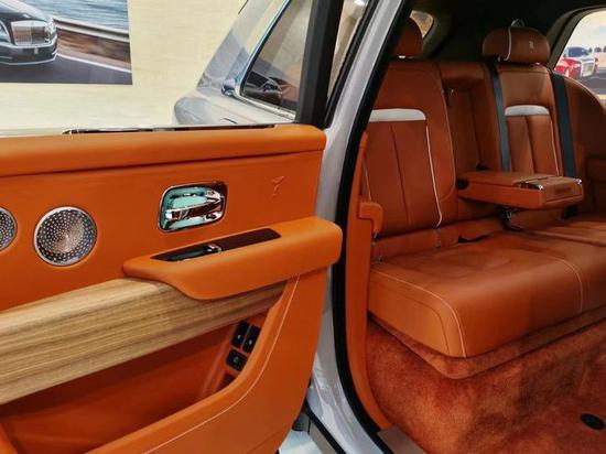 劳斯莱斯库里南大面积真皮包裹的设计,则成功的营造出奢华舒适的内饰氛围。仪表盘的设计较为古朴,内部指针清晰可见,外圈还配备有劳斯莱斯珠宝般的装饰环。方向盘沿用了经典的三辐式造型,但是整体设计更加小巧、厚实,并且内部包裹有可加热的柔软材质。
