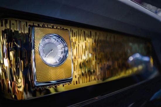 这台幻影加长版配备了隐私套件,驾驶员座椅后方有一块大尺寸电致变色玻璃,按下按钮,可以变为不透明玻璃。后排乘客在车内商谈时,玻璃隔层利用特定频率的复合物防止前排人员听到声音,带来隔音效果。后排乘客通过内部通化装置与驾驶员直线联系,驾驶员同样利用该系统可“呼叫”后排乘客。