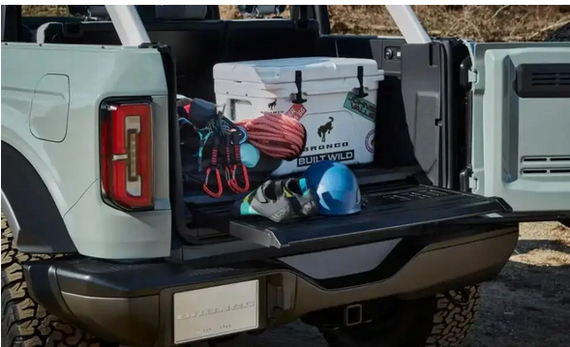 全新福特Bronco的车顶支持拆卸,其中三门版车型的车顶采用了三段式的拆卸方式,五门版车型采用的是四段式的拆卸方式,新车的车门也支持拆卸下来,整体拆卸下来之后看上去非常有野性。我们可以看到它的车顶周围都配备了防滚架,可以保证它的车身的刚度。新车的尾部的轮廓也非常的硬派,采用了外挂式的备胎设计,它的尾部采用了很方正的造型,尾灯采用了一个很有立体感的设计,下包围也比较突出。