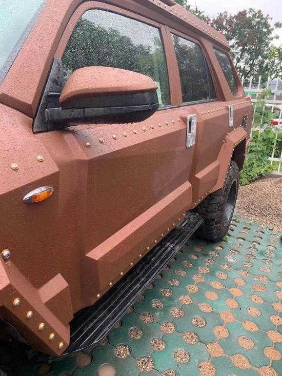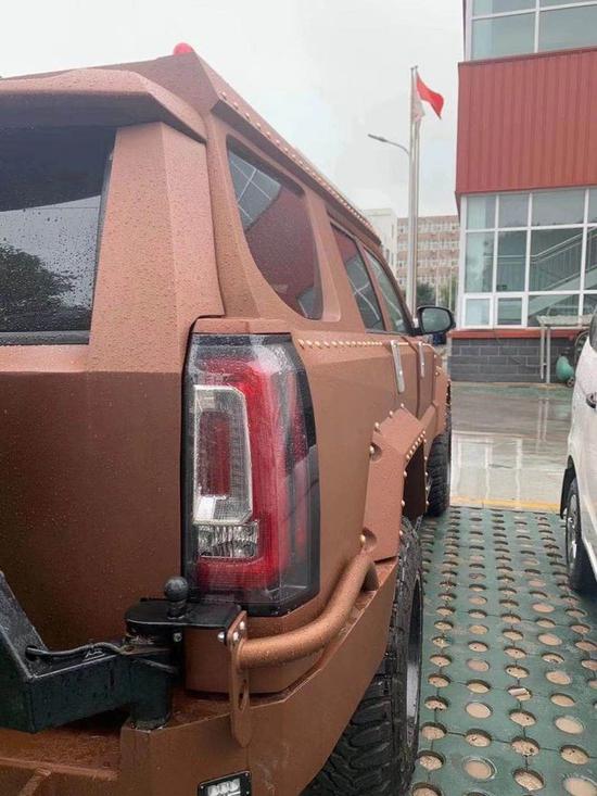乔治巴顿迈克将军的硬派车尾造型,这大轮胎,一般的乘用车是伤不了它的,给人一种安全感,身边人都称它为铁血战士,全身铁甲,可以当防暴车使用,这款车在我们国内足够使用了,它和乔治巴顿战车很相似,那种气派感十足,但是一般人买不起。
