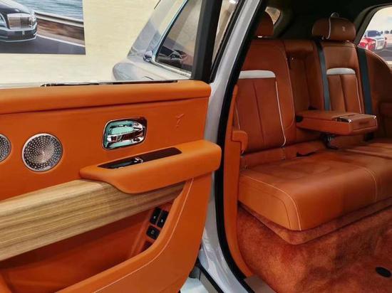 劳斯莱斯库里南座椅设计大胆又充满自信,彰显劳斯莱斯汽车的品质与工艺。座椅采用简洁而现代的马蹄铁图案,强调座椅的支撑力。座椅间固定的中央扶手台设有存放定制香槟酒具的酒柜和冷藏箱,电子控制的座椅角度,并带有按摩功能及座椅扶手加热功能。腿部支撑可电动伸展90°,为后排乘客带来极致舒适的体验。