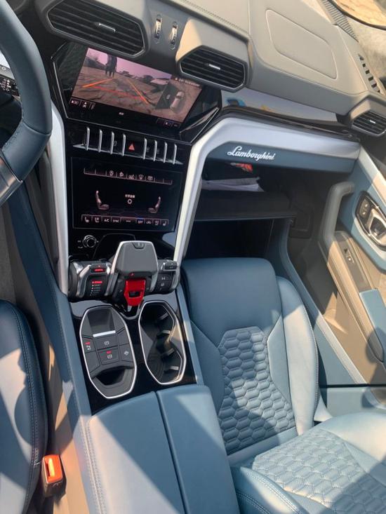 兰博基尼SUV野牛Urus内部设计和内饰呼应着它的外观,拥有鲜明的兰博基尼风格、色彩和个性。博基尼希望为驾驶者提供一种飞行器的驾驶感,座舱的调控皆触手可及。中控台采用了大面积的碳纤维材质,上下双屏的设计让整车充满了科技感。上方屏幕是常规的多媒体系统,从图中可以看出,该车中控屏不仅显示清晰,还配备了夜视系统。下方屏幕主要是控制空调系统和座椅通风、加热功能。兰博基尼Urus的方向盘采用了真皮+翻毛皮材质包裹,手感特别棒,方向盘上的多功能按键阻尼适中,换挡拨片使用起来相当顺手。