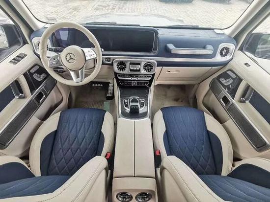 2020款奔驰G500内饰也走的是豪华路线,让你感觉不到这是一款纯种的越野车。2020款奔驰G500多功能的方向盘设计,真皮包裹的方向盘手感非常好,握感舒适、全新的中控台造型,记速器的仪表盘等等。