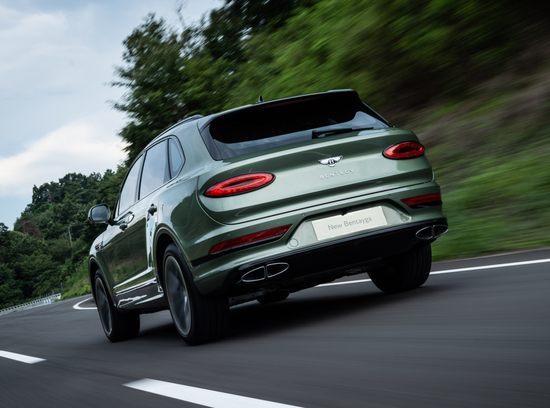 前脸保留了宾利家族式设计风格,一贯的蜂窝状四边进气格栅,搭配左右两侧的圆形LED灯组,看起来非常生动形象。下方是梯形扰流设计和规整的雾灯组合,让整个车款非常规整,营造了非常高级的时尚感。