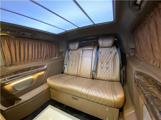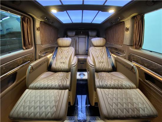 奔驰威霆改装商务车7座车厢内的座椅采用的是2+2+3的布局,奔驰威霆改装商务车版座椅是根据人体工程学打造而成的多功能智能航空座椅人性化设计进口航空座椅;设计更人性,设备更智能,座椅更舒适。