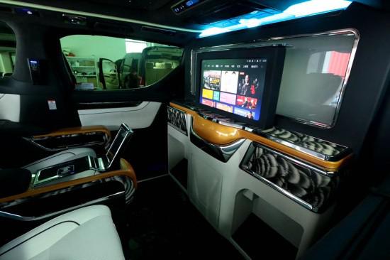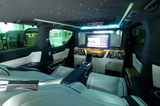 打造完美舒服空间、打造出真正极致勾引的埃尔法奢华MPV。前后仓中间加装了隔断,雾化玻璃,电视,音响,酒柜应有尽有增加了可娱性和商务性,私密安全完全保护。