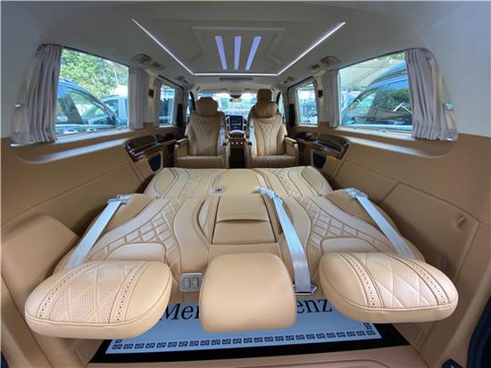 奔驰威霆改装商务车采用高品质手工包皮座椅加上精湛的工艺制作,拥有非常出色的质感与触感。第三排座椅可以放平一键式变豪华双人床,棕色搭配彰显沉着冷静的商务气度。