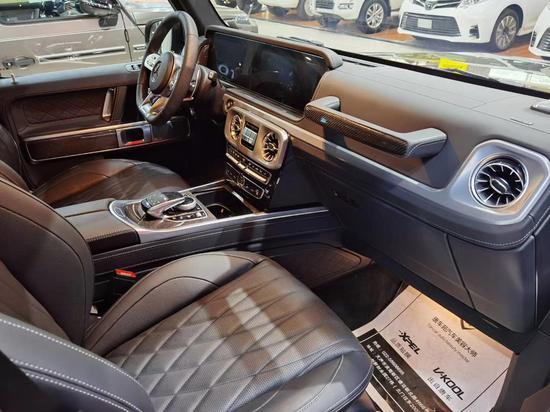 奔驰G63中控台的出风口均采用镀铬装饰,采用双屏幕布局,样式更精致,档次感更高,更奢华。座椅均采用黑色并加入装饰,多功能方向盘、座椅、仪表板、中控台和门板均采用手工缝制,细节之处更彰显尊贵。