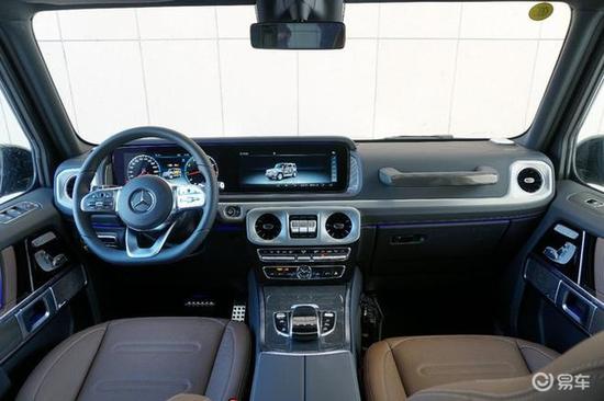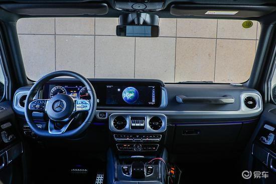 新 G 350 在内饰中使用“感性?纯粹”的家族设计语言。双 12.3 英寸的高清显示屏凸显科技感和时尚感,与副驾座前方的抓手、三个镀铬差速锁开关等硬派越野元素和谐共存。