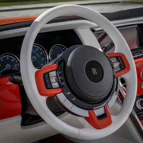 劳斯莱斯标志性马车式的对开门设计自然不会缺席,车门巨大的开启角度最大程度保证了上下车的便利性。顶部全景天窗的面积覆盖了一多半的车顶区域。车尾造型同样延续了劳斯莱斯方正的家族式特征,粗壮的D柱在车尾形成了陡峭的倾斜。平直的后风挡自车顶的扰流板向下延伸,在尾部形成了一个平台。整体造型依旧充满力量感。尾灯造型相比全新幻影更加方正,环状的LED灯带内部镶嵌着带有双R标志的装饰,更显精致。
