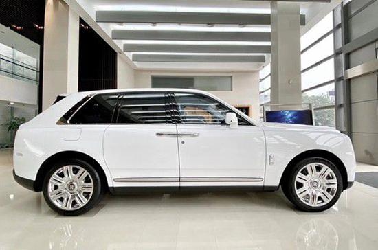 劳斯莱斯库里南 (配置|询价)别出心裁地通过车身塑形,把进气格栅向上向前推高,让劳斯莱斯车标和欢庆女神傲然伫立于车头,尽显王者风范,整个前脸给人庄重威严之感。库里南整车外观给人的外观同幻影 (配置|询价)一样霸气十足。
