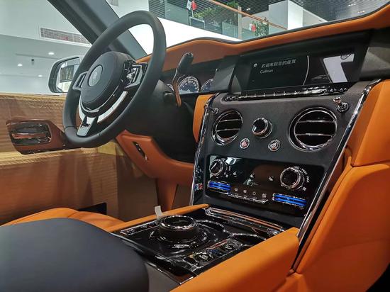 库里南的内饰将劳斯莱斯的奢华与简洁对称的功能之美融为一体。中控面板的边框由手工打磨的金属条包裹,不仅将上部的仪表板和中部的控制台连接起来,更通过容纳仪表板上的横向设计元素,增加了掌控感。三幅式设计的方向盘看上去尺寸不小,足够厚实。中间多功能控制区有实木点缀,以至于开着库里南也有一种生活的仪式感。