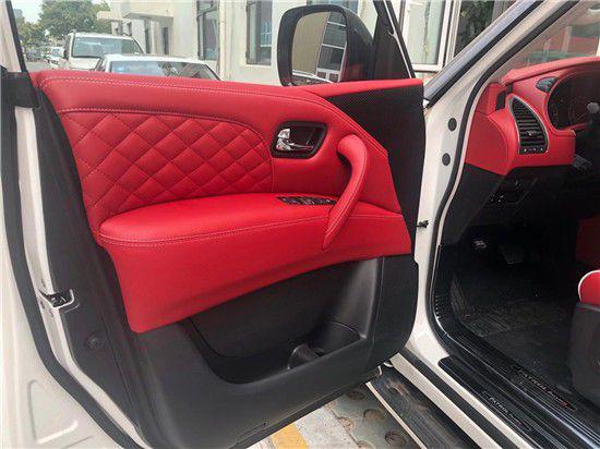 日产途乐Y62内饰整体风格豪华,真皮座椅、DVD娱乐、上下坡以及胎压监测等装备也都悉数出现。日产尼桑途乐内饰材质也更加的考究,使用了皮革,铝以及木纹样条作为点缀。中控部分的设计比较具有豪华感,标准日系豪华车的风格,BOSE音响是很多中高端车所选用的