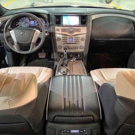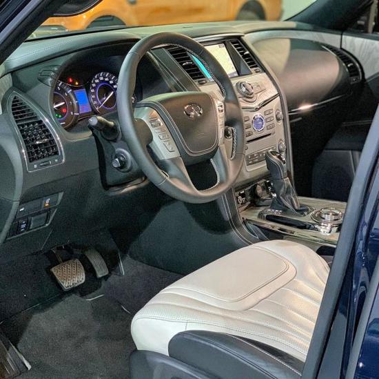 新款QX80更加的霸气,依然保持不变的就是它那庞大的车身,就算是途乐也是比它小一号,并且途乐完全就是仿照QX80的一款车型。新款英菲尼迪QX80的大灯和尾灯都改为纯LED大灯和LED日行灯。英菲尼迪QX80中东版所有的变化都相当微妙,但这些微妙结合到一起却得到了十分神奇的化学变化,让QX80实际上看起来更有一辆大型SUV的气质,而不是 一辆大而笨重的拥有三排座椅和轿车车头的“怪物”。前脸的下部还得到了一个新的更开阔的面板,给人以一种更为开放的感觉。