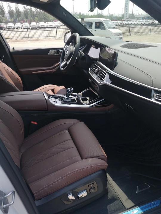 宝马X7 (配置|询价)采用宝马全新家族设计,双肾的进气格栅面积相当庞大,细长的大灯组采用开眼角的设计,使新车横向视觉感受更宽。新车灯组内部布局精致,配备了矩阵式激光大灯,点亮后效果可佳。新车在前杠下方的设计格外有气势,配上镀铬条的融入,显得新车有着十足的豪华感。
