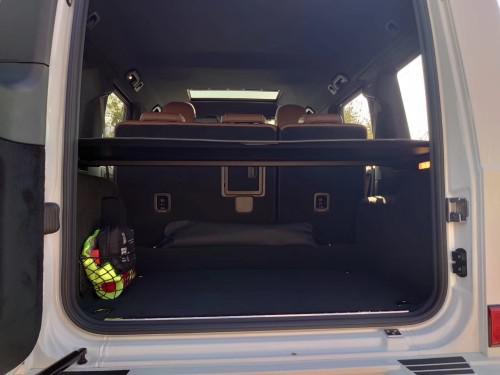 奔驰G (配置|询价)350车尾仍然采用了后背的备胎设计,但不再布置在尾箱门上,而是通过支架布置在车体上。宽敞开阔的车内空间就已经令人倍感自由奔放,特有的居高临下的座椅位置确保您时刻保持的全方位视野。(商家联系方式详见文章结尾)