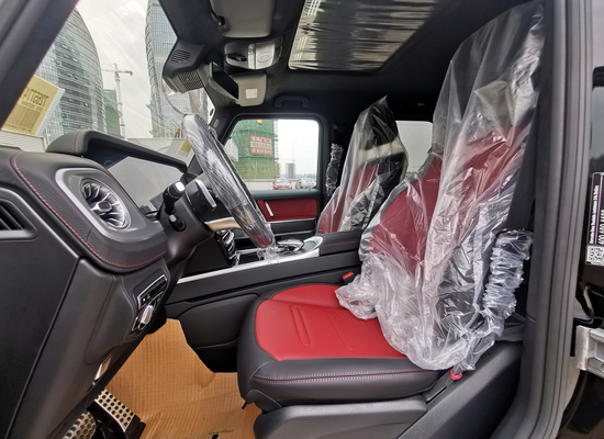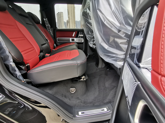 20款奔驰G500内饰豪华气派,卓越的品质和精致的工艺在车内体现得淋漓尽致,对细节的精益求精是内饰设计中的重要原则。车内采用深色调与桃木装饰,黑色真皮运动座椅非常舒适,方向盘以高档真皮包裹装饰,触感极其细腻。配有桃木装饰的操控台,稳重大气,同时提高了整体的质感。各种功能按钮应有尽有,丝毫不次于豪华轿车的功能。 内饰焕然一新,虽然还是以平直的线条为主,但完全没 了上一代车型那种粗糙的感觉了,用料和做工都能令人满意。跟奔驰的很多其他车型一样,它也用上了双12.3英寸屏幕,科技感很强。三把差速锁按键依旧布置在中控台的正中间,这是奔驰G级的灵魂所在。奔驰G500经过全新改款中控大屏和仪表部分也采用了科技感满满的双12.3寸巨幕,空调出风口也改为重新设计的炮筒式,豪华感和科技感大大提升。