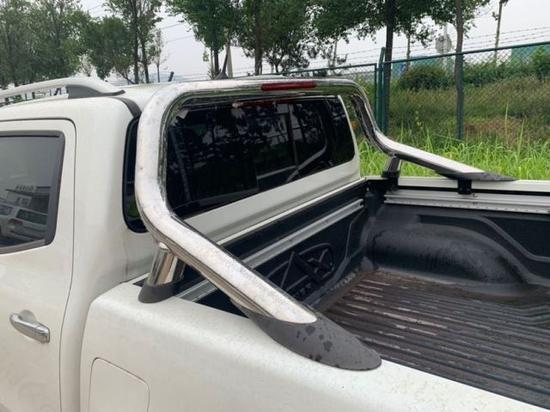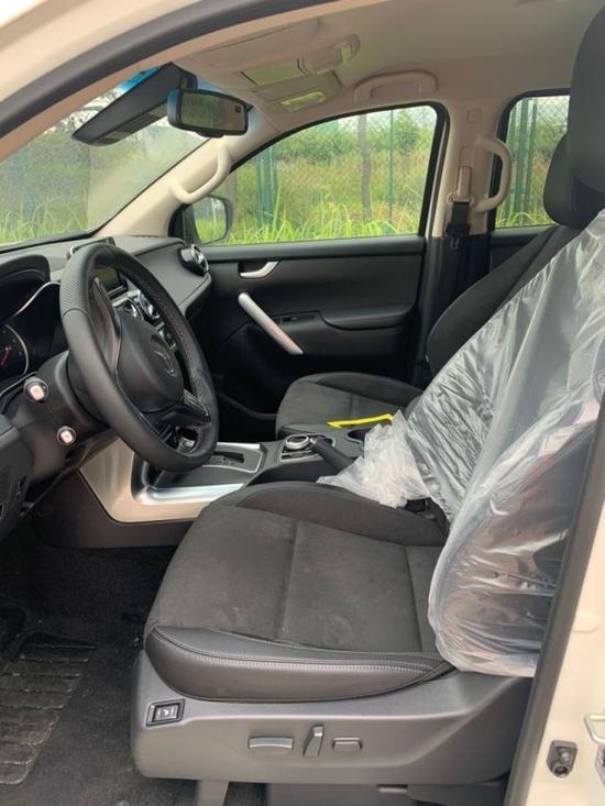 奔驰X级皮卡的外观、内饰变动很多,清亮百搭的白色打底,前脸在保有原版X级的基本风格之外,以黑色炭纤维饰条装饰在中网上方别具一格;车头两侧轮眉向外扩张,搭配冷饰品铆钉修饰,更显不羁。