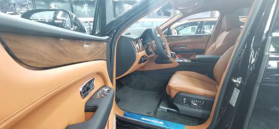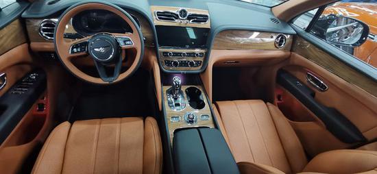 21款宾利添越4.0汽油全新样式的三辐式多功能方向盘,整体质感良好,中控台中央悬浮式液晶屏设计,上方圆形出风口是宾利独有的“牛眼式”出风口设计。新款宾利添越内饰几乎全部被顶级的牛皮包裹,而且全部是由技术优异的工匠纯手工打造,辅以少量的木纹和金属装饰,华贵至极。