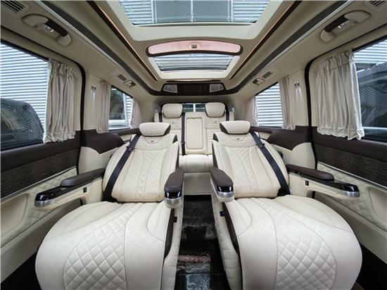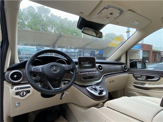 奔驰V (配置|询价) 260L内饰部分的内饰设计采用了奔驰最新的设计元素,整体感觉豪华而时尚。配备木纹饰板、真皮多功能方向盘、8.4英寸液晶显示屏,双区自动恒温空调等。