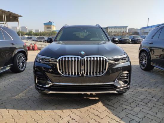 20款加版宝马X7 (配置|询价) 黑/黑 配置:六座包 水晶档把 液晶钥匙 黑色钢琴漆内饰条 22寸多幅轮毂(样式757型) 黑色金属漆。生产日期20年1月加版标配比美规标配多哈曼卡顿音响,黑色无烟煤内顶,后排座椅加热,方向盘加热。标准配置:哈曼卡顿音响,自适应双轴空气悬架(底盘升降),无钥匙进入(所有车门,行李箱盖),脚感电尾门,后视摄像头,铝制行李架,卓越风格套件,全景天窗,智能感应氛围灯(带迎宾光毯),运动座椅,腰部支撑,隐私防晒玻璃,黑色无烟煤车顶,前后座椅加热,胎压监测,多功能运动型真皮方向盘,自动四区空调,第三排座位,自适应全LED大灯,LED雾灯,远光灯自动控制,主动保护,驾驶辅助功能,Sirius XM卫星广播,智能紧急呼叫,Apple CarPlay,带无线充电的扩展智能手机连接,无线热点,交叉路口警报,带有紧急制动的碰撞警告,车道偏离预警,丝绒脚垫,舒适加热套装(方向盘加热,前排座椅加热及门边扶手和中控扶手加热),远程发动机启动(手机软件启动),后排行李箱包(包括行李箱卷帘,储物网,拉紧带和柔性行李网)。