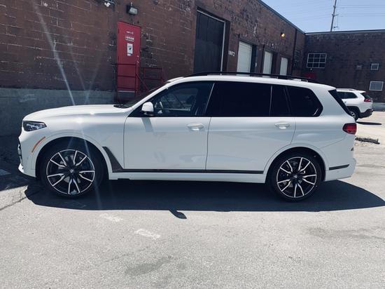 20款宝马X7 (配置|询价)采用宝马全新家族设计,双肾的进气格栅面积相当庞大,细长的大灯组采用开眼角的设计,使新车横向视觉感受更宽,新车灯组内部布局精致,配备了矩阵式激光大灯,点亮后效果可佳。