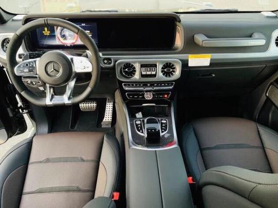 20款奔驰G63采用了奔驰最新的双屏幕式设计,全液晶仪表盘和中控台屏幕都达到12.3英寸,同时内饰质感和工艺都有了很大的进步,较之于现款车型,它的内饰发生了巨大的变化,融入了不少现款奔驰S级、E级的设计元素,从而变得更加豪华,而家族式的连屏设计则凸显了车内的科技感,当然了,经典的“三把锁”按键自然不会缺失,并且设置在中控台最为显眼的位置。