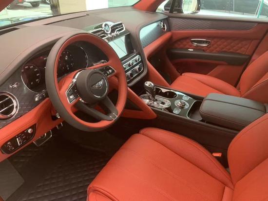 21款宾利添越内饰奢华至极,真皮包裹的方向盘手感无与伦比,真正了解添越之后会发现,驾驶感觉难以置信,面对着方向盘的这个位置才是最被重视的。精致典雅的内饰由英国克鲁工厂纯手工完成,用料做工极为考究,座席肩部钻石纹绗缝工艺,剪裁精巧,座席之上刺绣宾利徽章所洋溢的对称风格设计,庄重而别致。最上方的这块石英表做工足够精致,传统钟表在车内出现更多的作用就是提升品位。细节方面,宾利添越真皮座椅的椅背及坐垫采用了大量菱形打孔处理,视觉效果很漂亮。皮质柔软,座椅填充物软硬适中,电动调节、三组记忆、加热通风以及按摩等功能一应俱全,无可挑剔。