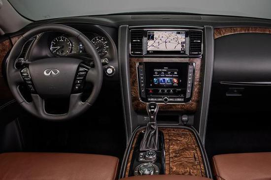 配置部分,新款QX80采用的是传统的指针仪表,不过中控台搭载了两块中控屏,中控屏支持Apple CarPlay和Android Auto,而全新的倒车影像系统画面比老款则有较大的提升,而且后摄像头在水平和垂直方向的视野更大。此外,新车还配备盲点监测系统、车道偏离预计系统以及自适应巡航系统。