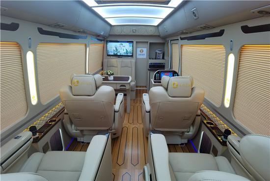 丰田考斯特改装商务车商务车更加注重商务旅行中办公的实用性。真皮航空座椅,电动调节装置可以让您自行调节最舒适的空间距离以及靠背以及脚托的角度,特殊的座椅构造,增加腰部的支撑,宽敞的空间让您的双腿收放自如,忘却旅途的紧迫感,体验如家般的感觉,缓解您在行车旅途中的疲劳。