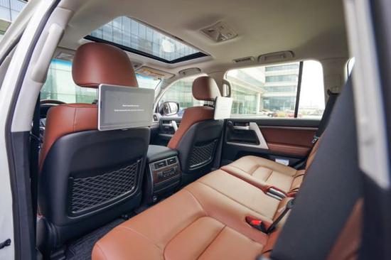 中东版丰田酷路泽5700内部空间采用了符合人体工学的设计理念,内部空间非常充裕,座椅采用真皮包裹。也在继承传统底盘的基础上焕然一新。第一排和第二排空间已经不需要多说了,基本上正常人的身高范围都能满足,并且都绝对的充裕,但是第三排座椅腿部空间已经几乎没有了,头部尚有一拳的距离,座椅坐垫还算 实,但绝对不适合长时间乘坐。