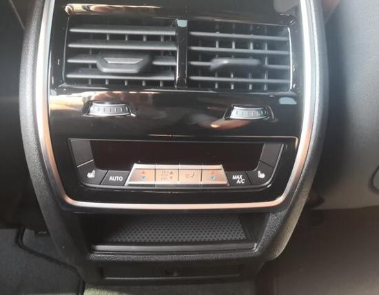 20款新一代宝马X5中控功能键盘也进行了重新设计,中控出风口中间还配备了小尺寸液晶屏,显示了部分空调温度和风量。出风口两侧的风量滑轮更加精致。