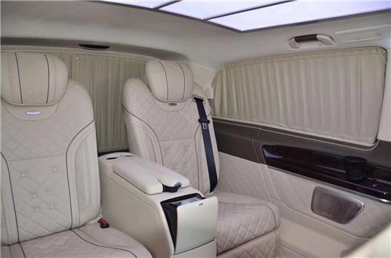 进口奔驰V250 商务车改装改装 每一席座椅皆享尊贵定制级的豪华舒适,即便身处第三排,亦能享受以人机工程学打造的应需而变的舒适旅程,进口奔驰V250 商务车改装后排坐椅垫可前后电动调节,椅背整体可倾斜,实现躺卧姿势。宽大的中央扶手采用皮质包覆,提升用户便利性。