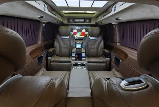 每一席座椅皆享尊贵定制级的豪华舒适,即便身处第三排,亦能享受以人机工程学打造的应需而变的舒适旅程,奔驰V (配置|询价)260L商务车改装后排坐椅垫可前后电动调节,椅背整体可倾斜,实现躺卧姿势。宽大的中央扶手采用皮质包覆,提升用户便利性。
