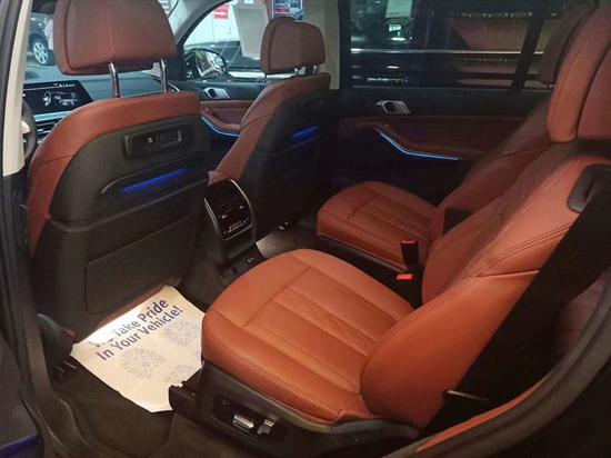 内室12.3英寸全液晶显示的仪表盘、搭载了iDrive7.0系统的,依旧支持语音、触摸和手势多种操控方式的中控屏幕、可制冷/加热的杯架、香氛系统以及水晶质感的挡把。音响方面新车配备有1500W功率的20个扬声器,比新7系 (配置|询价)多出4个,注意力监测的液晶仪表盘及全新的三辐式多功能方向盘,中控区域为悬浮式触控显示屏,下方为空调出风口与实体功能按键,,除此之外,新车还配备了Vernasca皮革内饰,四区气候控制系统及三段式全景天窗X7采用了重视驾驶位的设计,中控面板向驾驶位倾斜,更方便驾驶员操作。在设计风格上,简洁而富有科技感,用料和工艺都达到了同级别的上乘水平,硬朗的线条,更具视觉张力,符合其运动化的定位。