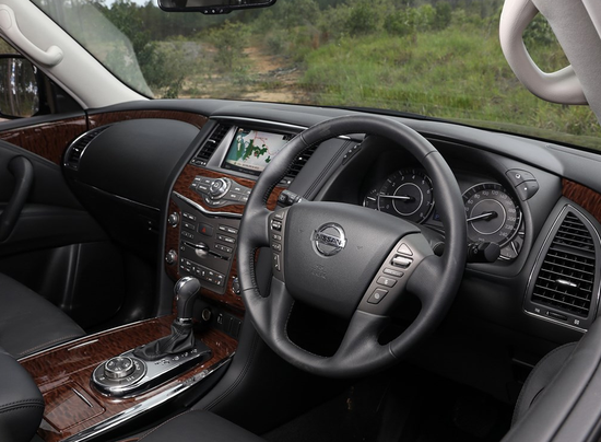 中控台区域的设计充满机械感,配备有大量的物理按键。整体内饰大面积采用软皮质材料包裹,并且前排搭配有大量的木纹饰板装饰,提升了内饰部分的豪华气质。汽车配备有嵌入式的中控液晶屏幕以及四辐式的多功能运动方向盘,使得内饰部分多了几分科技时尚感。2020款日产途乐整体内饰的空间表现非常充足,而且中央扶手区域还设置有多个储物格,进一步提升了这款汽车整体的实用性。