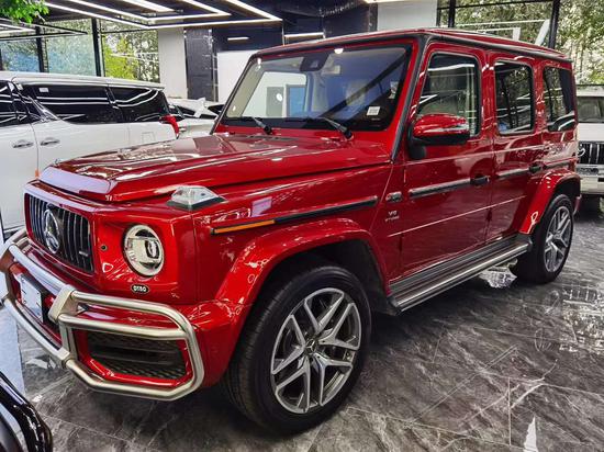 20款奔驰G63 (配置|询价)全新的直瀑式进气格栅可以说是家族最新的设计风格,也是在新车外观造型上与奔驰系列产品差异化最明显的地方。此外,G63最大的轮圈尺寸,进一步提升了它外观造型的彪悍程度。展车不仅采用了全新的车身涂装,还搭配了红色的轮圈装饰,更加个性。
