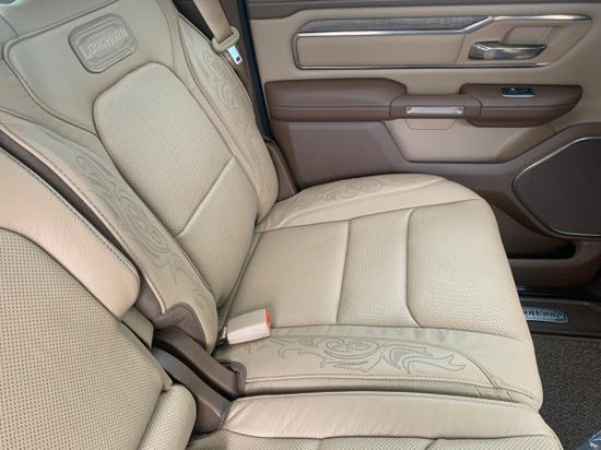 道奇公羊大角牛做工则完全摆脱了美式的粗糙感,边缘、接缝都处理的很精细。真皮座椅各自独立,配有加热、按摩等舒适功能,每个座椅独立配一个操控手柄,各项功能由乘坐者自己控制。道奇公羊皮卡车型全部座椅均采用真皮包裹,前排还配备了十分实用的运动座椅。