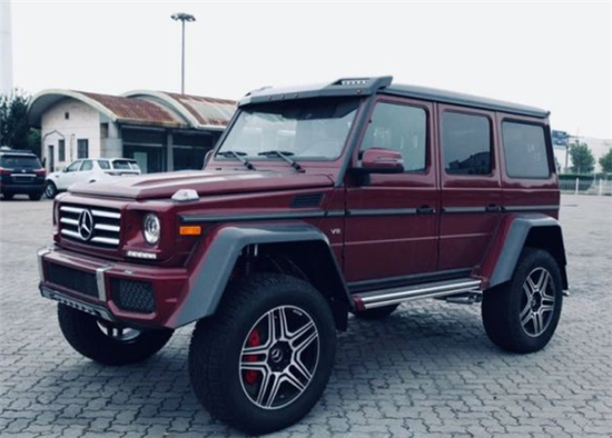 奔驰G500 4X4 这辆车的车身宽度达到了2134mm,这要比一台普通版奔驰G级车型宽了305mm!也许有人会问,这么宽的车身在拥挤的街道中怎么开啊 得了吧,开这车在城市里代步简直是暴殄天物,这家伙可以征服沙漠,可以征服沼泽,谁会用它来市区代步。G500 4x4真的是太高了,甚至比姚明还要高10cm,达到了2.36米。想要上车,真的需要手脚并用,以不太优雅的姿势才能上去。22寸大越野轮毂,越野能力没的说。