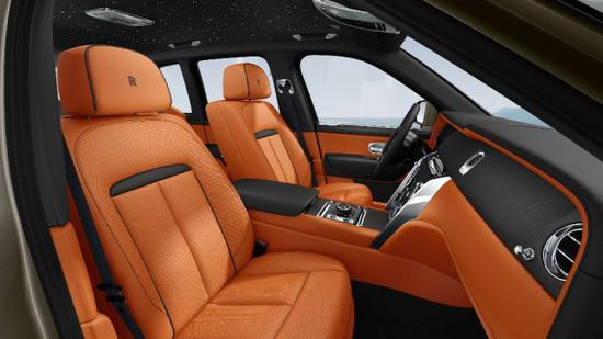 库里南的前排和后排一样的至关重要,我想,车主并不会因享受后排,忽略前排的驾乘感受。座椅设计彰显劳斯莱斯汽车的品质与工艺,简洁而现代的马蹄铁图案,强调座椅的支撑力。整体椅背由一整张皮料精心塑形,打造出极为立体的表面。后排两个独立座椅之间设有后排中央固定扶手,可容纳带有劳斯莱斯威士忌酒具的酒柜、香槟酒具和冷藏箱,为后排乘客带来旅途中的终极享受。