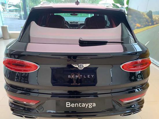 21款宾利添越车尾部分,新款添越使用了宾利最新家族式的尾部设计,整体看上去十分简洁、椭圆形尾灯犹如两颗珠宝,十分璀璨。双边共四出的排气,标志着新款宾利添越依然有着十分强悍的性能。