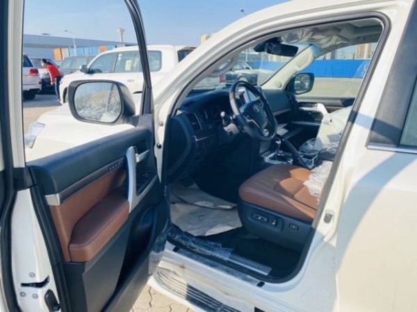 20款酷路泽5700VXR 12气囊底升GTS版白棕 配置:新款刀锋20轮,10.1寸新款后娱乐)四个车门氛围灯 拖钩罩 地射灯 (7座手续)8座,雷测,底盘升降,12气囊,蠕行,GTS包围 遥启,天窗,LED氙灯,前雾灯 冰箱,桃木真皮多功能方向盘 环车影像,液晶仪表 真皮主副电动座椅,前排座椅通风,8速,电动后备箱门(油箱138L),10寸屏幕导航,JBL音响 全地形全时四驱,四区自动空调,一键启动,无线门锁,无线充电 智能卡,中控锁,自动感应雨刷,大灯清洗装置,电动折叠后视镜,航踏,前、后雾灯,自动远光灯,自适应性悬挂系统,防擦板照明,制动防抱死系统,刹车辅助,车辆稳定性控制系统(VSC), 盲点监(BSD),自适应可变悬浮系统(AVS)倒车后视辅助(RCTA),预碰撞安全系统(PCS),车道偏离警报(LDA),上坡辅助(HAC), 胎压监测,扰流尾翼,拖钩,全车镀铬,电尾门,吸附式行李架,大尾翼。镀铬尾喉。